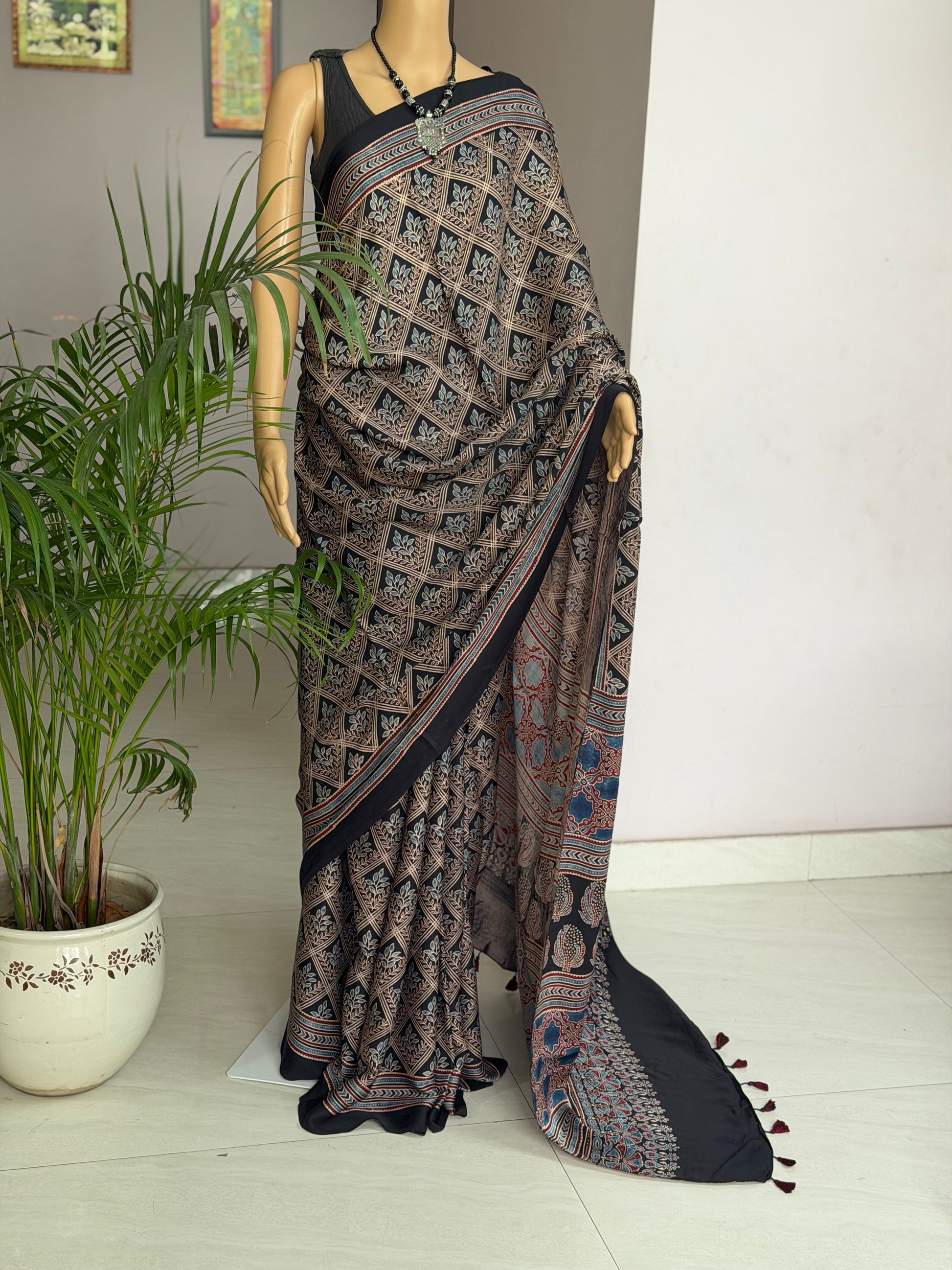 Ajrakh Modal Saree
