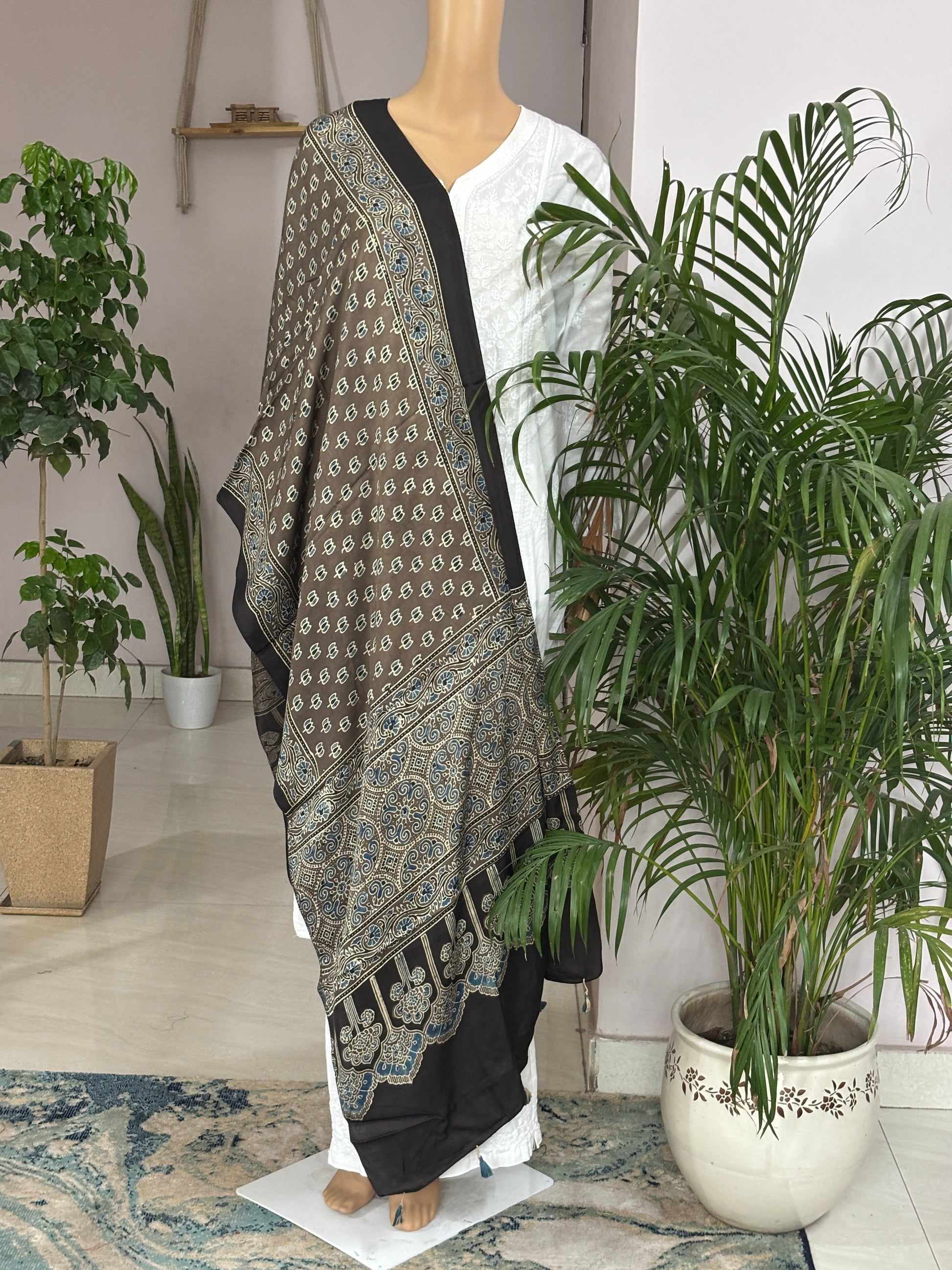 Earthen Brown Natural Dyed Ajrakh Lotus Motif Modal Stole
