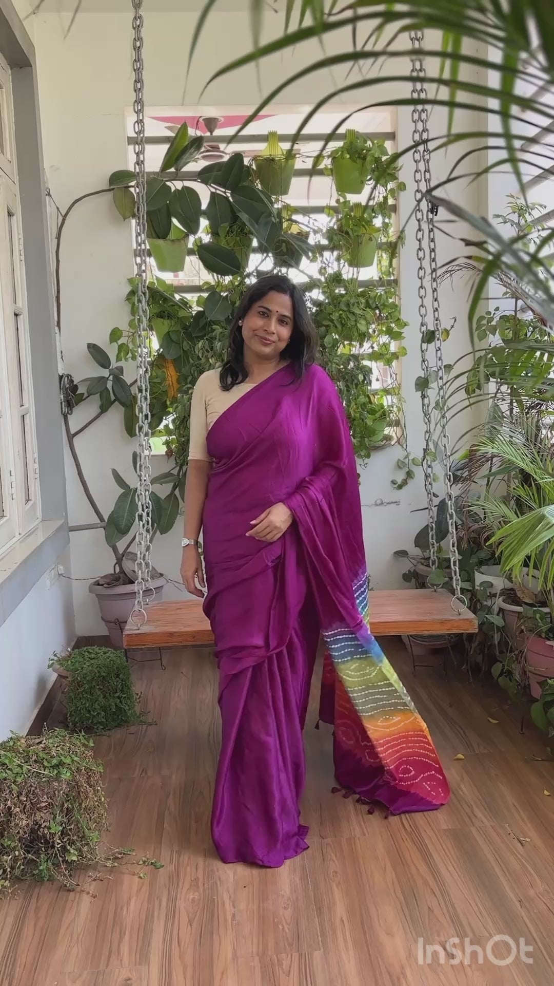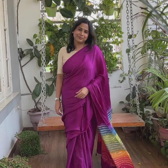 Magenta Solid Colour Semi Modal Saree with Multi Colour Bandhej Palla